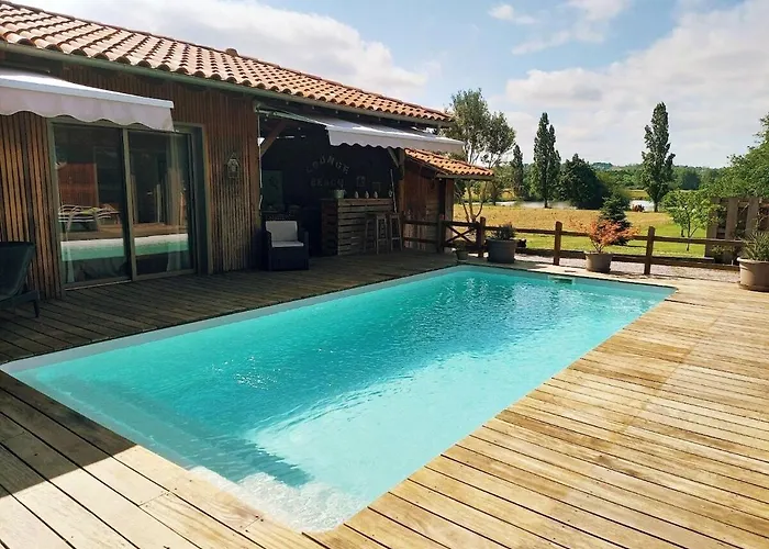 ממוקמת תוך 10 דקות נסיעה על Maison dite de Jeanne d'Albret, הוילה Gouts Locarmel משקיפה על ברכה.